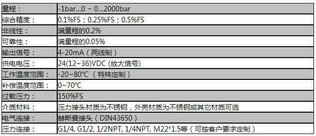 0…2mbar到0…600bar