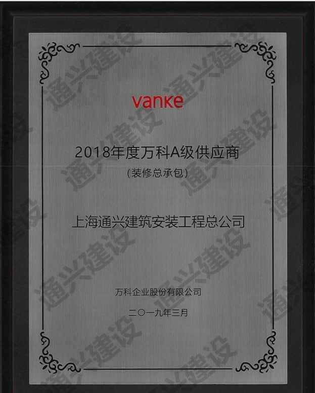 2018年度万科A级供应商装修总承包